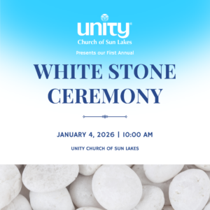 The White Stone Ceremony is a traditional Unity service that happens at the beginning of a new year. Derived from a guided meditation based on Revelation 2:17, it symbolizes a fresh start, spiritual freedom, and setting intentions for growth by writing the word that comes to you on a white stone, helping you focus on your inner journey and connect to Spirit.